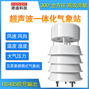 鄭州港迪科技的超聲波風速風向傳感器是一種360°的高精度一體式微型氣象站,可集成監測風速、風向、溫度、濕度、大氣壓。這款超聲波風速風向儀無啟動風速限制,零風速即可工作,無角度限制。同時港迪的超聲波風速風向儀采用高靈敏度探頭,信號穩定,精度高,安裝方便,歡迎詢價!